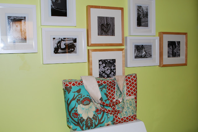 S. asked me a bag inspired by the first beach bag that I made, but smaller, I used fabrics from Amy Butler as S. asked and this is the result, Amy fabrics are absolutely irresistible, I think mainly by the freshness of colors andand patterns, LOVE them all!